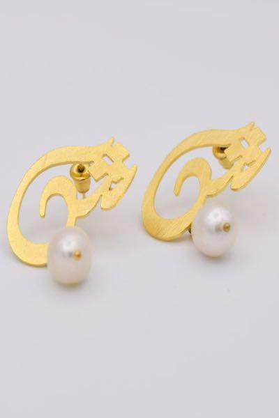 Arabic Letter (Sheen) Gold with Dangling Pearl