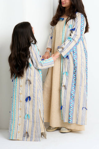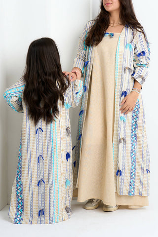 Sadu Bisht and sleeveless kaftan set Model is in Size 16 Little Model is in size 8