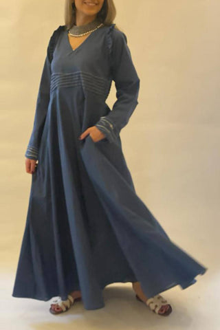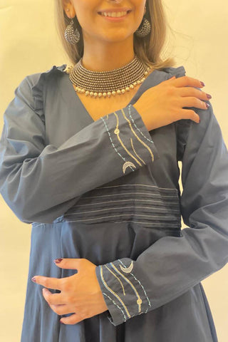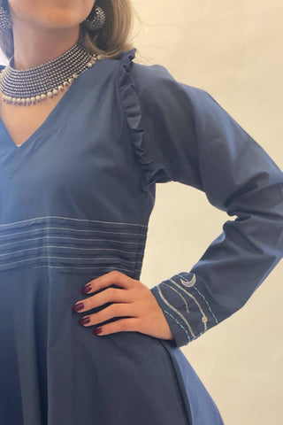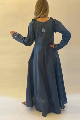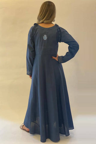 Cotton Dress with Hamsa Hand Embroidery in the back Details on the sleevesColor: Navy