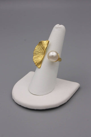 Oyster with Pearl Gold Set Set Includes:EarringsRingCuff Bracelet